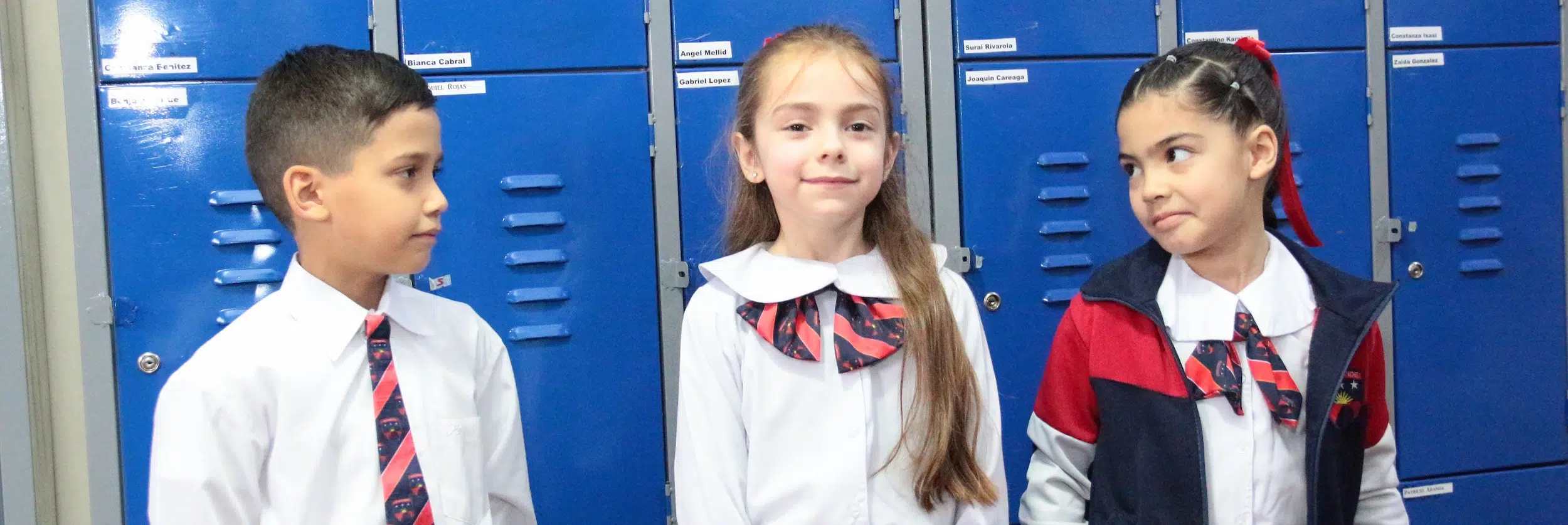 • Niñas: camisa blanca, corbatón, pollera tableada, media azul marino y calzado negro de gala.